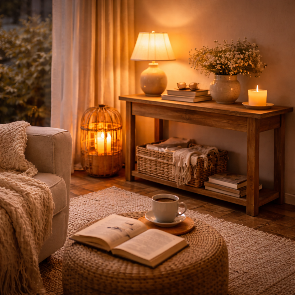 Salah satu langkah sederhana adalah mengatur pencahayaan. Lampu dengan cahaya lembut di sudut ruangan, lampu meja di dekat sofa, atau lilin kecil dapat mengubah nuansa ruang menjadi lebih ramah. Warna dan tekstur di sekitar, seperti bantal empuk atau selimut tipis, menambah rasa keakraban.